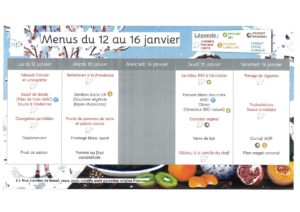 Menus du 12 au 16 janvier 2026