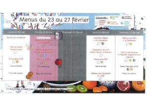 Menus du 23 au 27 février 2026